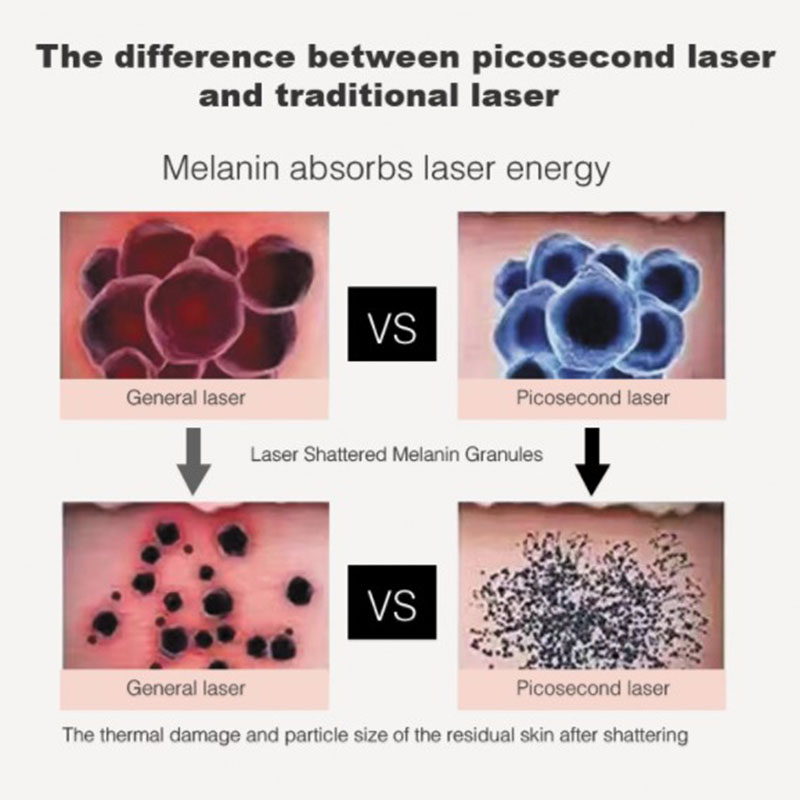 Pico laser's pulse width is much narrower than classic Nd Yag lasers which is at the level of Nanosecond. The narrower pulse width, the stronger explore force and the less pain.